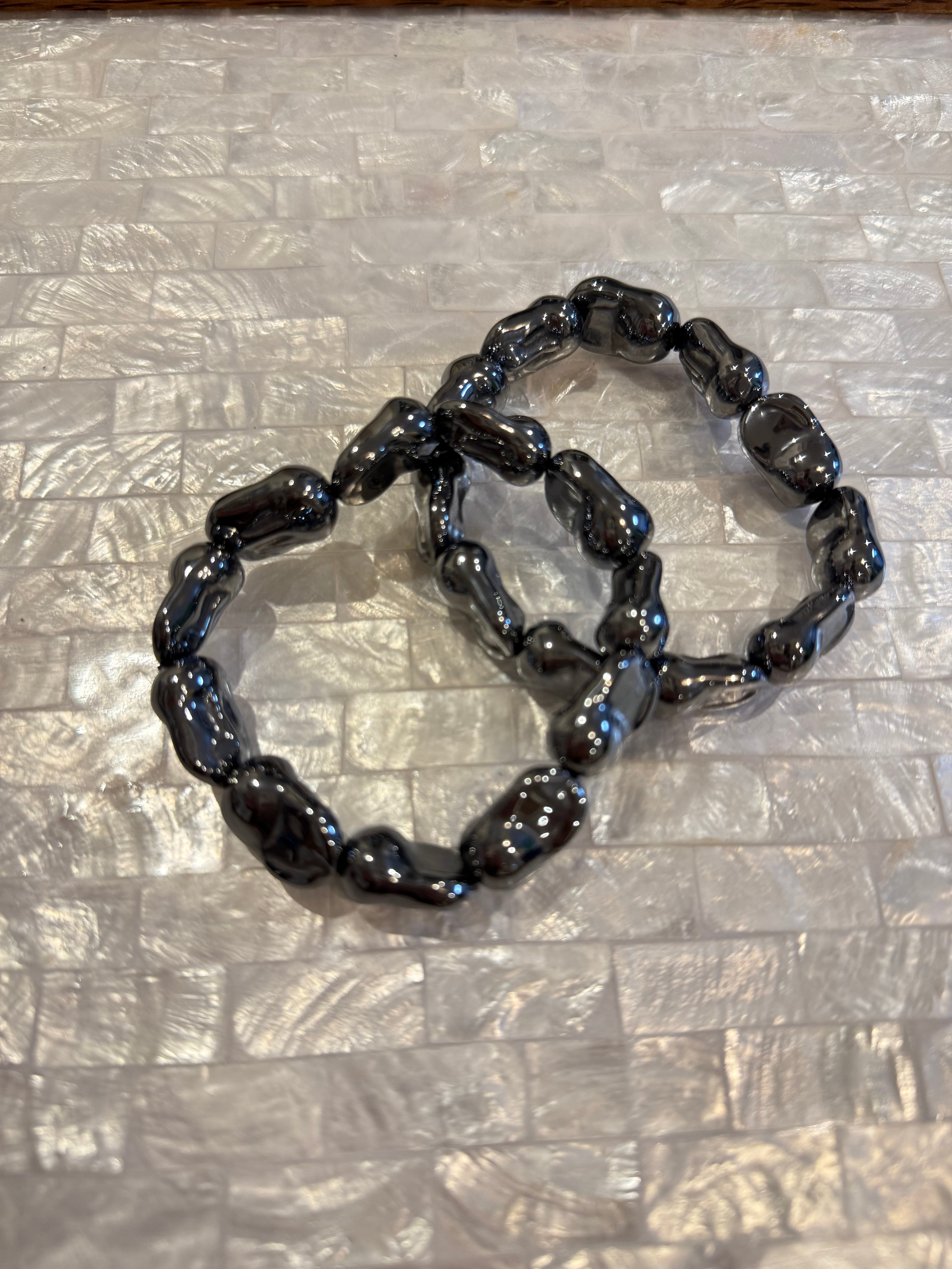 一見、モードな印象のブラックパールのようなブレスレット。