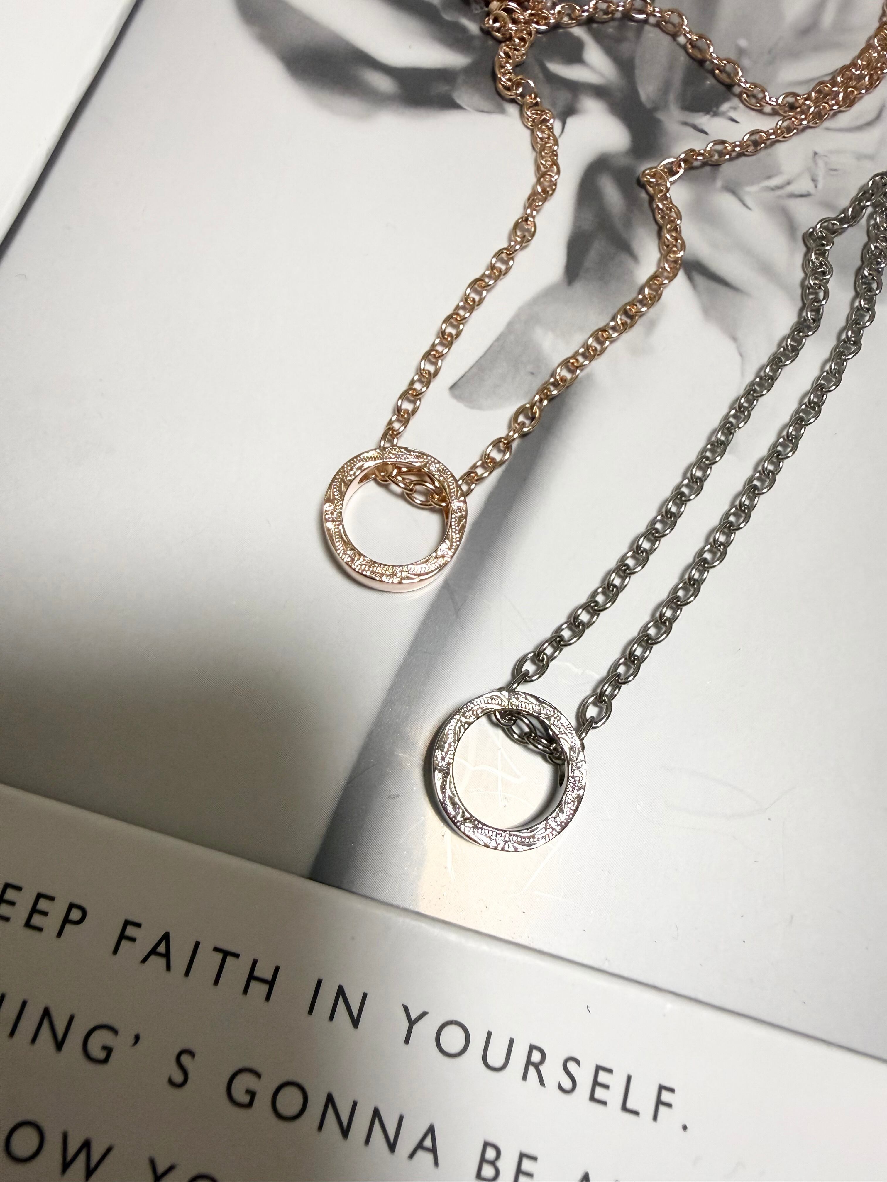 美しいデザインのリングネックレス。