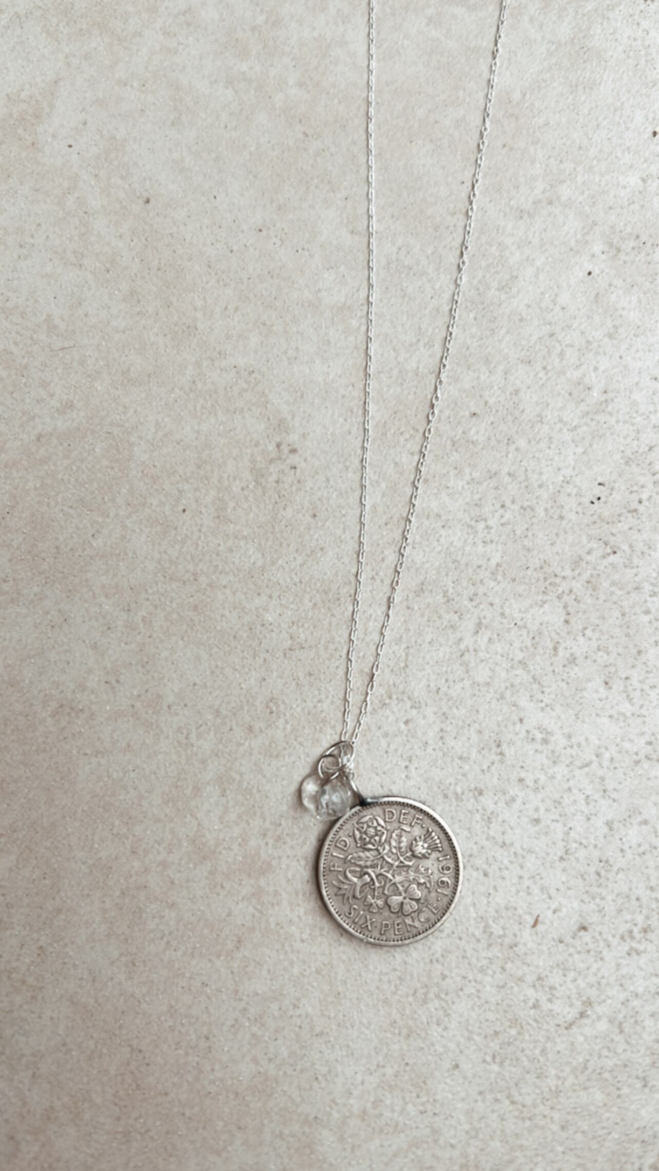 古き良き時代を感じるメダルネックレス。昔使われていた外国のコインを使ったシルバー925のネックレスです。風合いのあるコインとキラキラと輝くクリスタルが絶妙に組み合わさり、どこかロマンティックな雰囲気を演出します。長さは45cmで、首元を美しく彩ります。