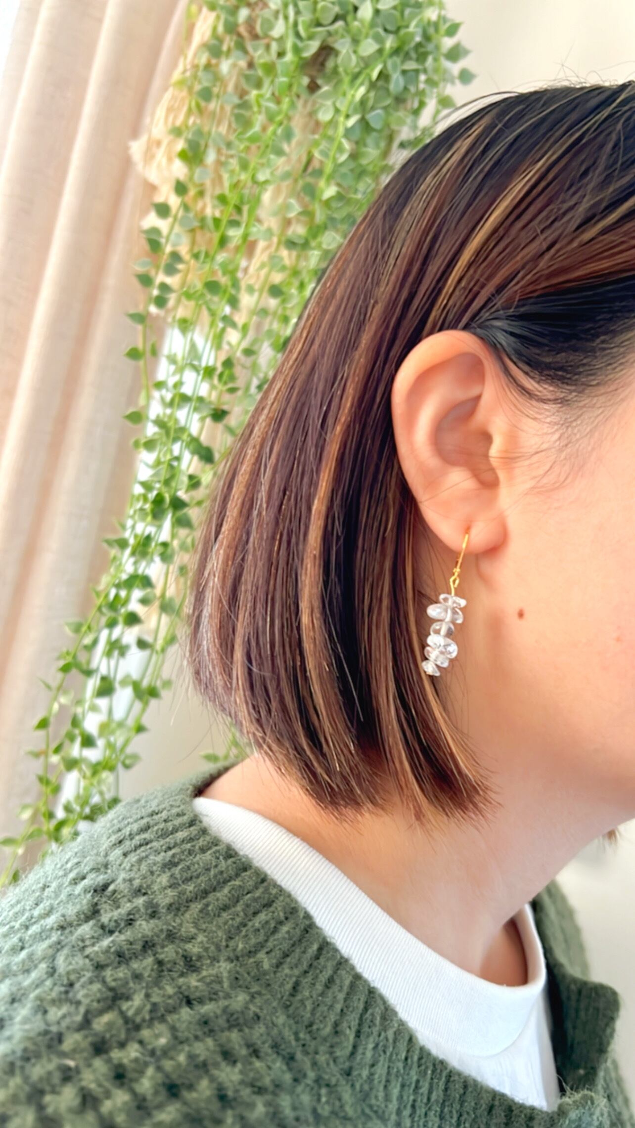 品良く輝くクリスタルスイングピアス。サージカルステンレス製でアレルギー対応なので、安心してご使用いただけます。ピアスの揺れが女性らしさを引き立て、おしゃれな印象を与えます。また、クリスタルには浄化作用があり、身につけることでネガティブなエネルギーを取り除いてくれます。普段のコーディネートはもちろん、特別なシーンやパーティーなどの華やかな場にもぴったりです。気品溢れる輝きで、周囲の人々を魅了しましょう。